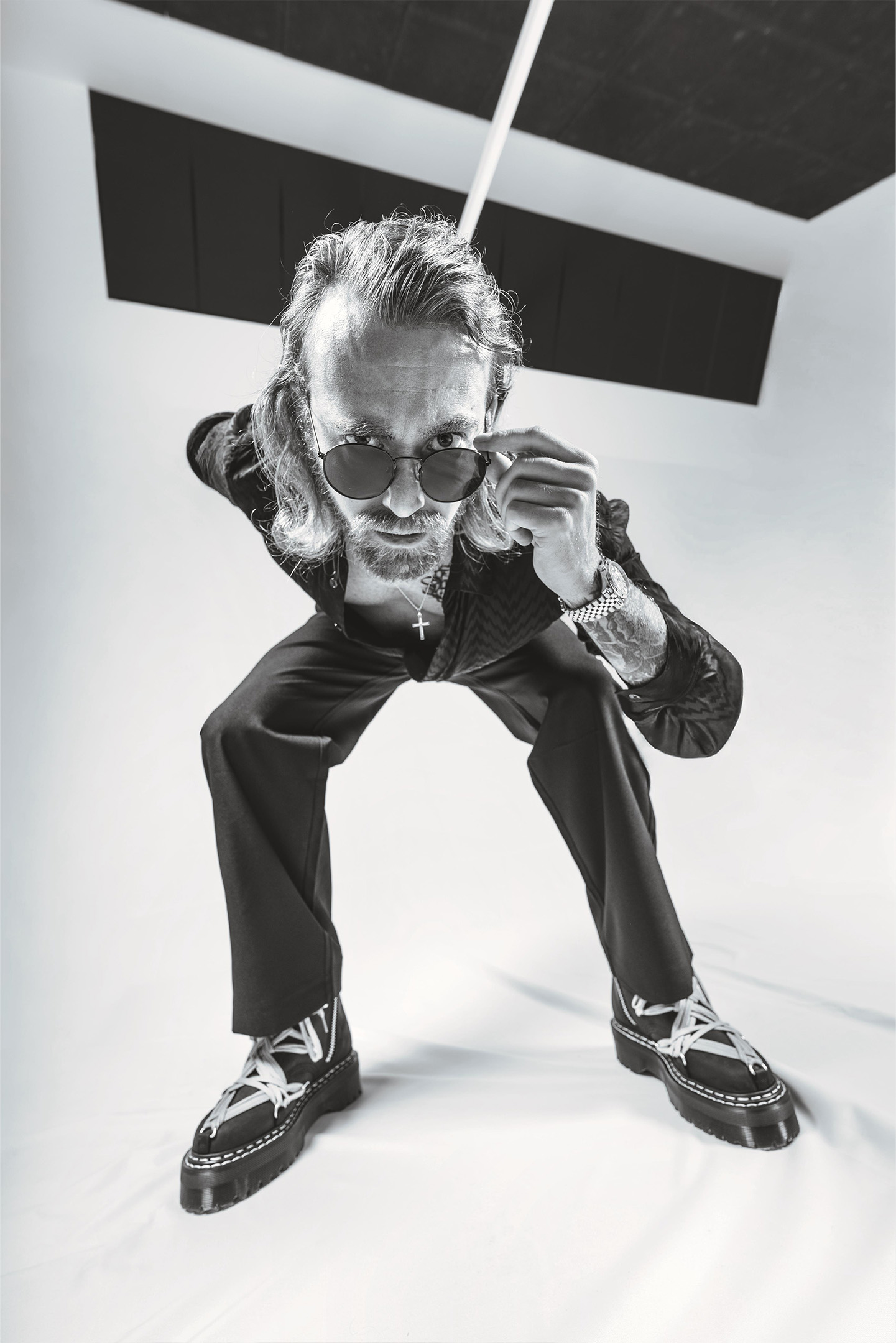 Country grit / Biker soul / Black denim. Heavy boots. Silver & gold details.