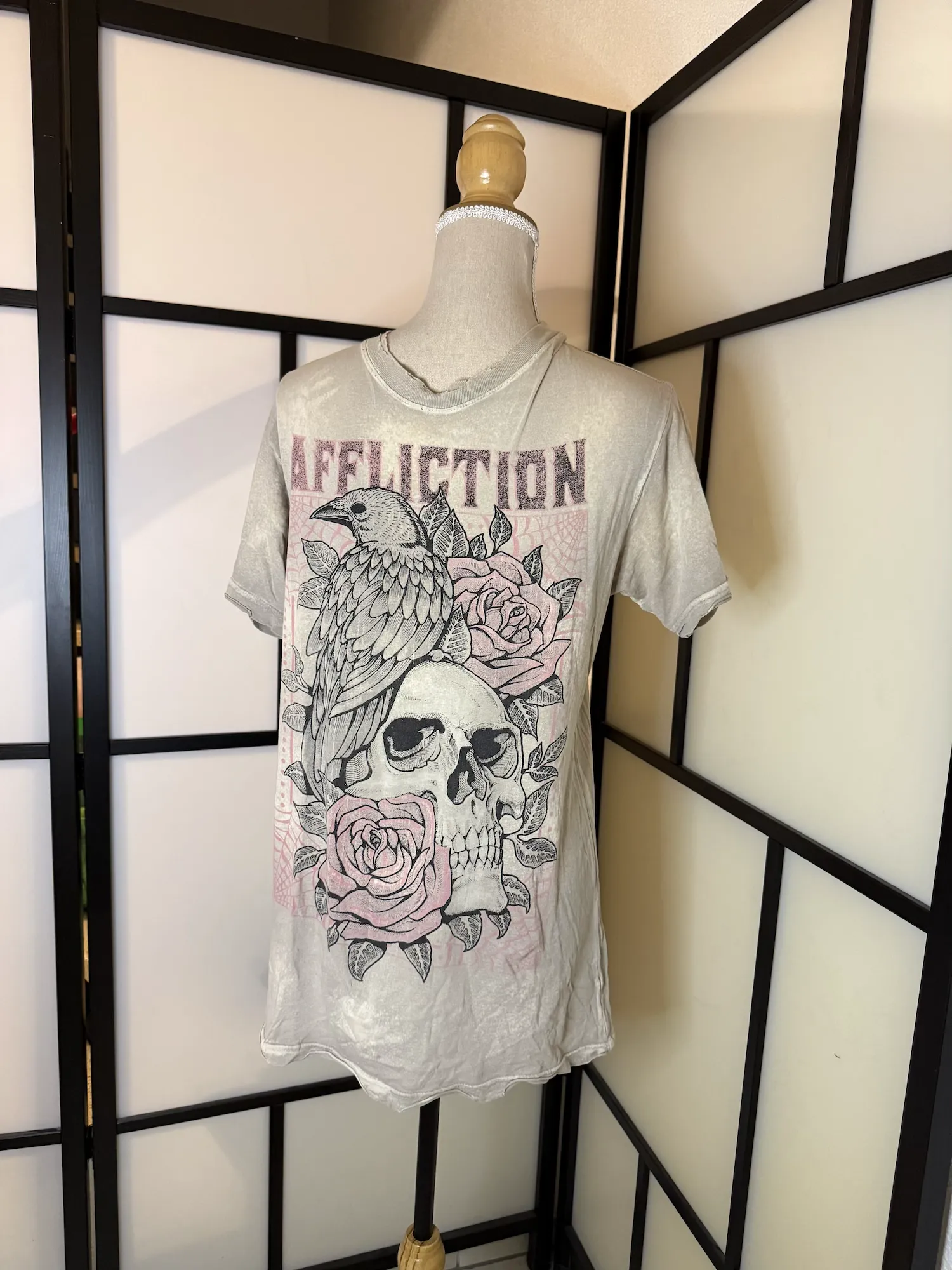 Original Affliction graphic T-shirt in size S/M, used condition.