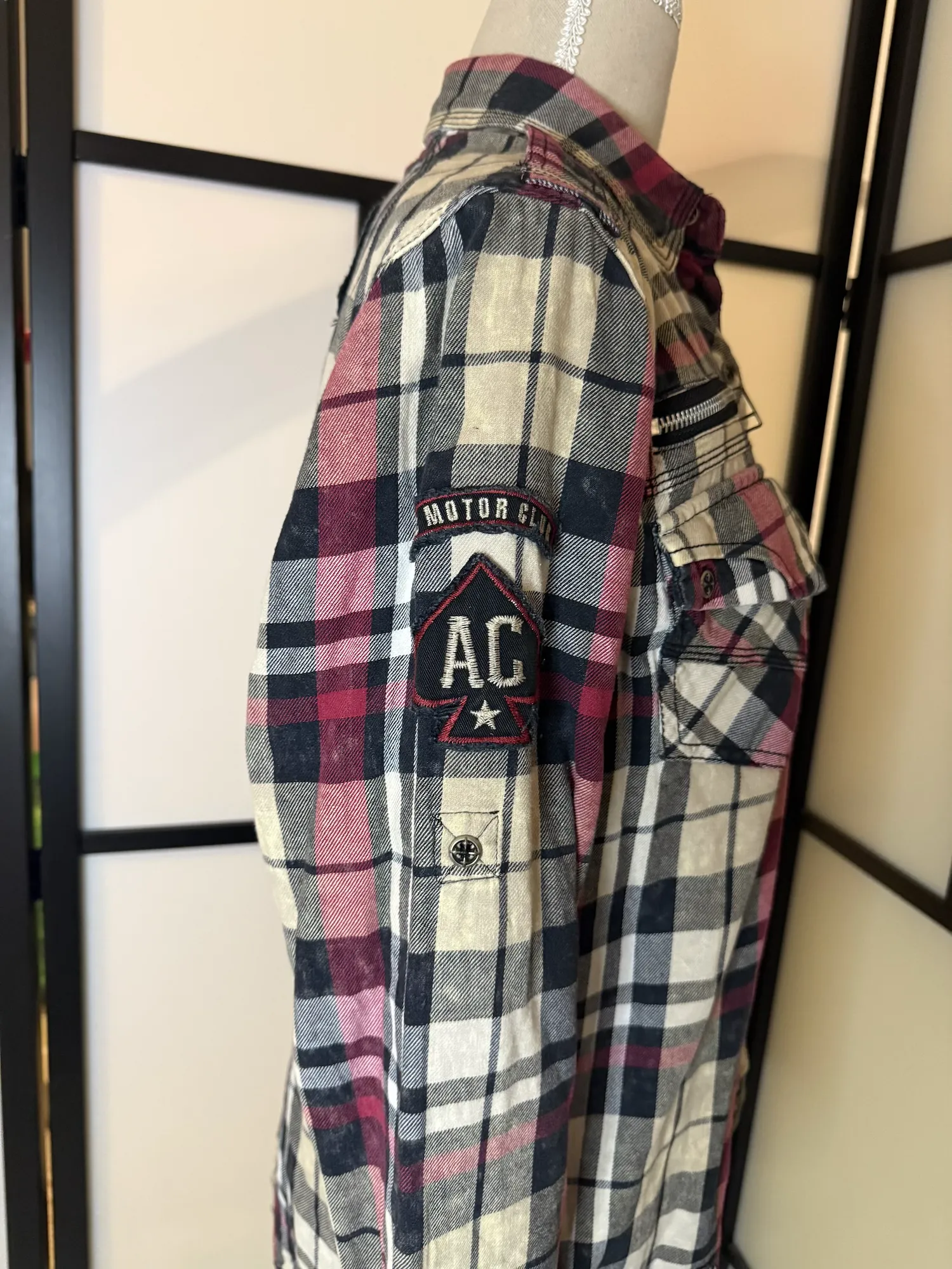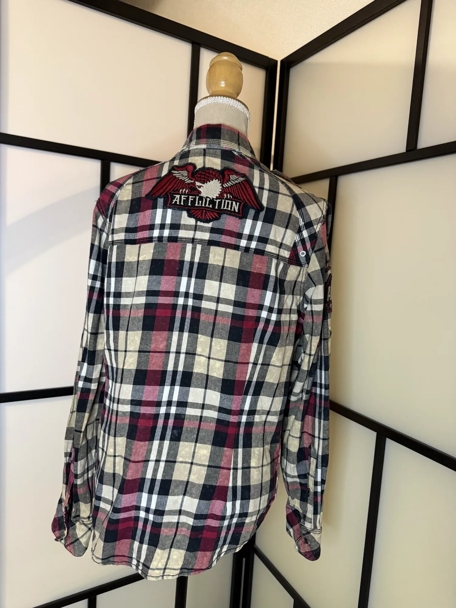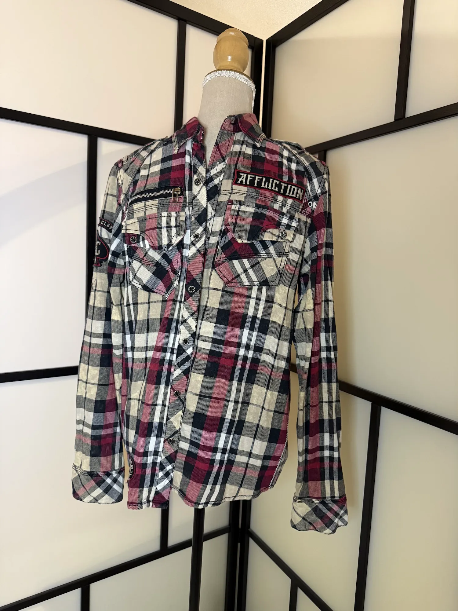 Eye-catching plaid shirt by Affliction in size S, worn condition.