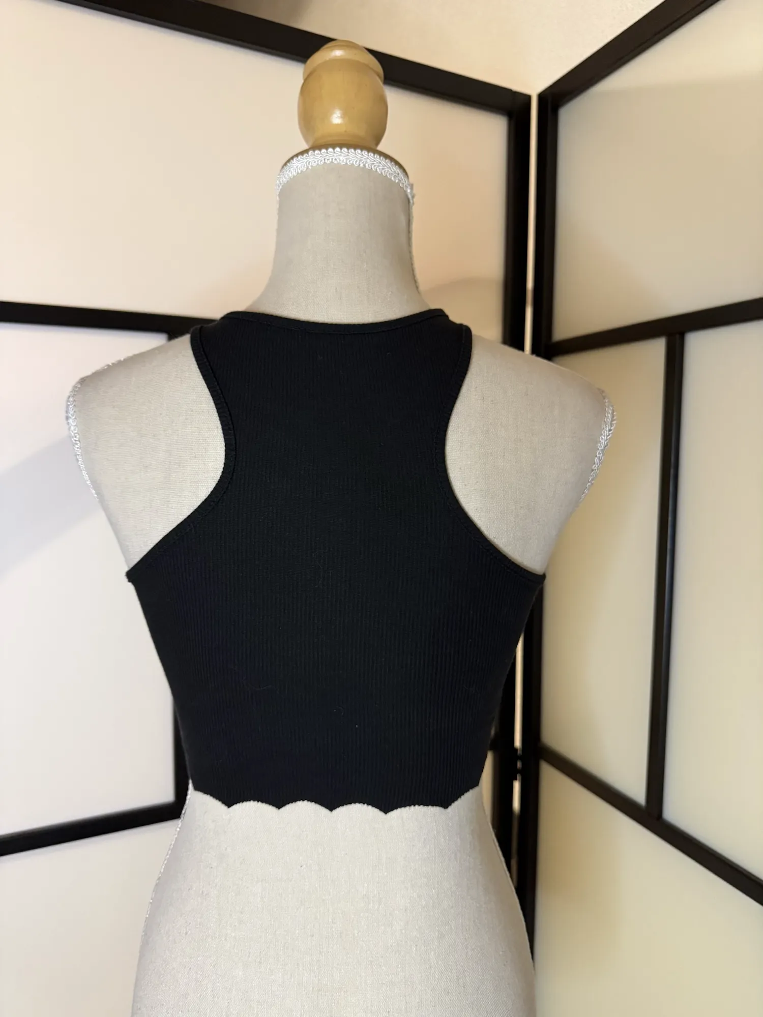 Designed in a fitted silhouette with ribbed, stretchy fabric for a comfortable feel. The slightly scalloped raw hem adds a subtle distressed touch.