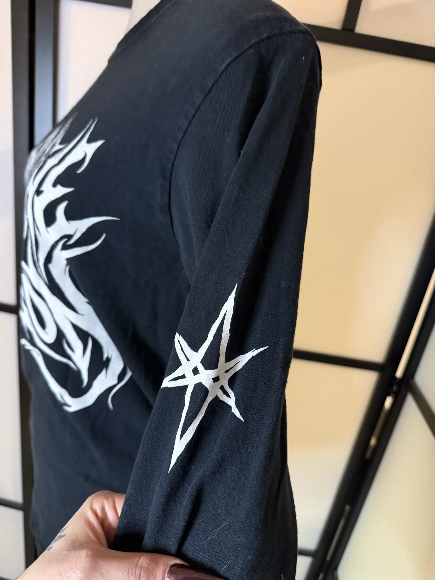 Soft cotton feel with a relaxed fit — perfect for concerts, layering, or styling with cargos, leather, or oversized fits for that effortless alt look.