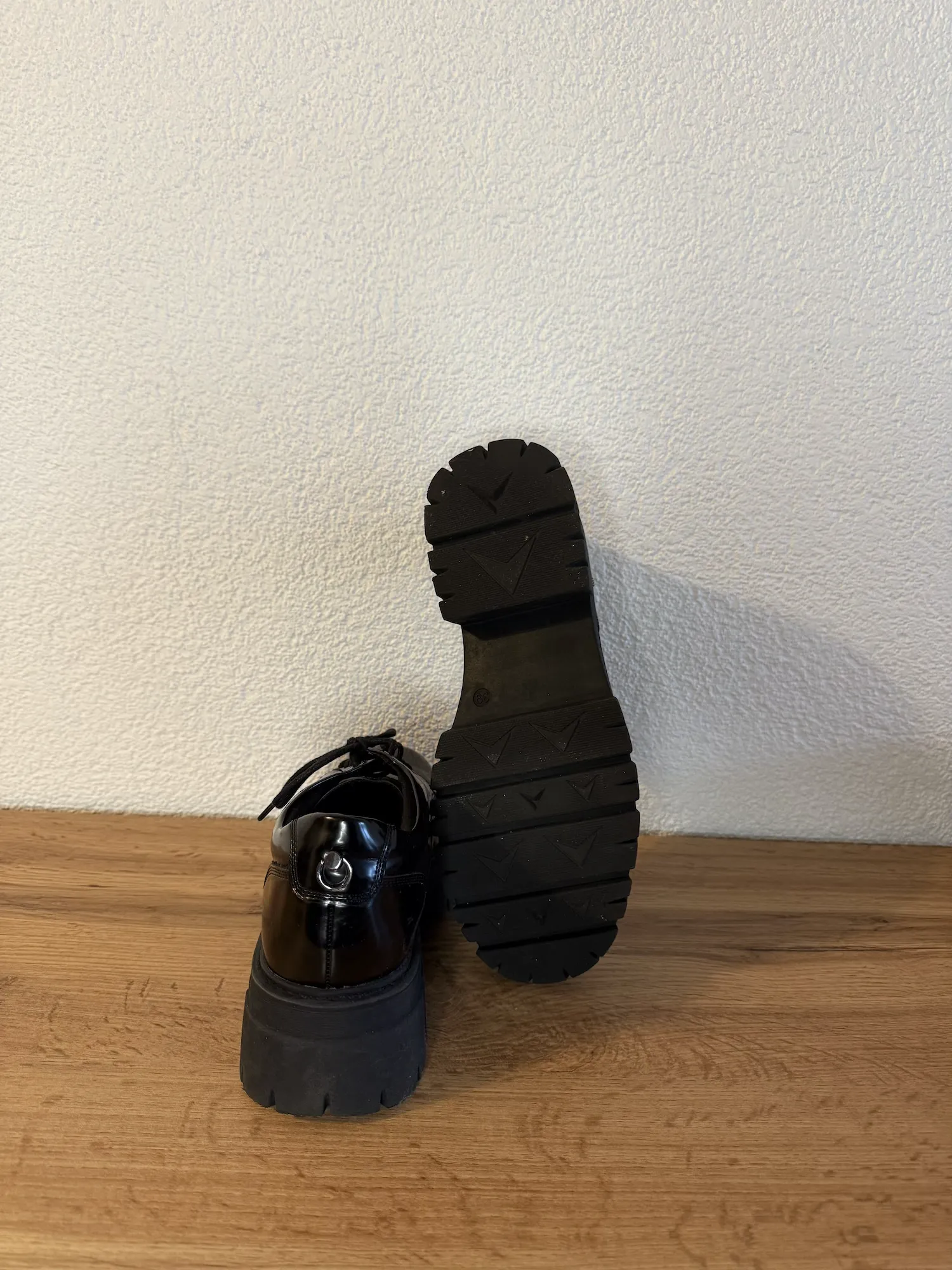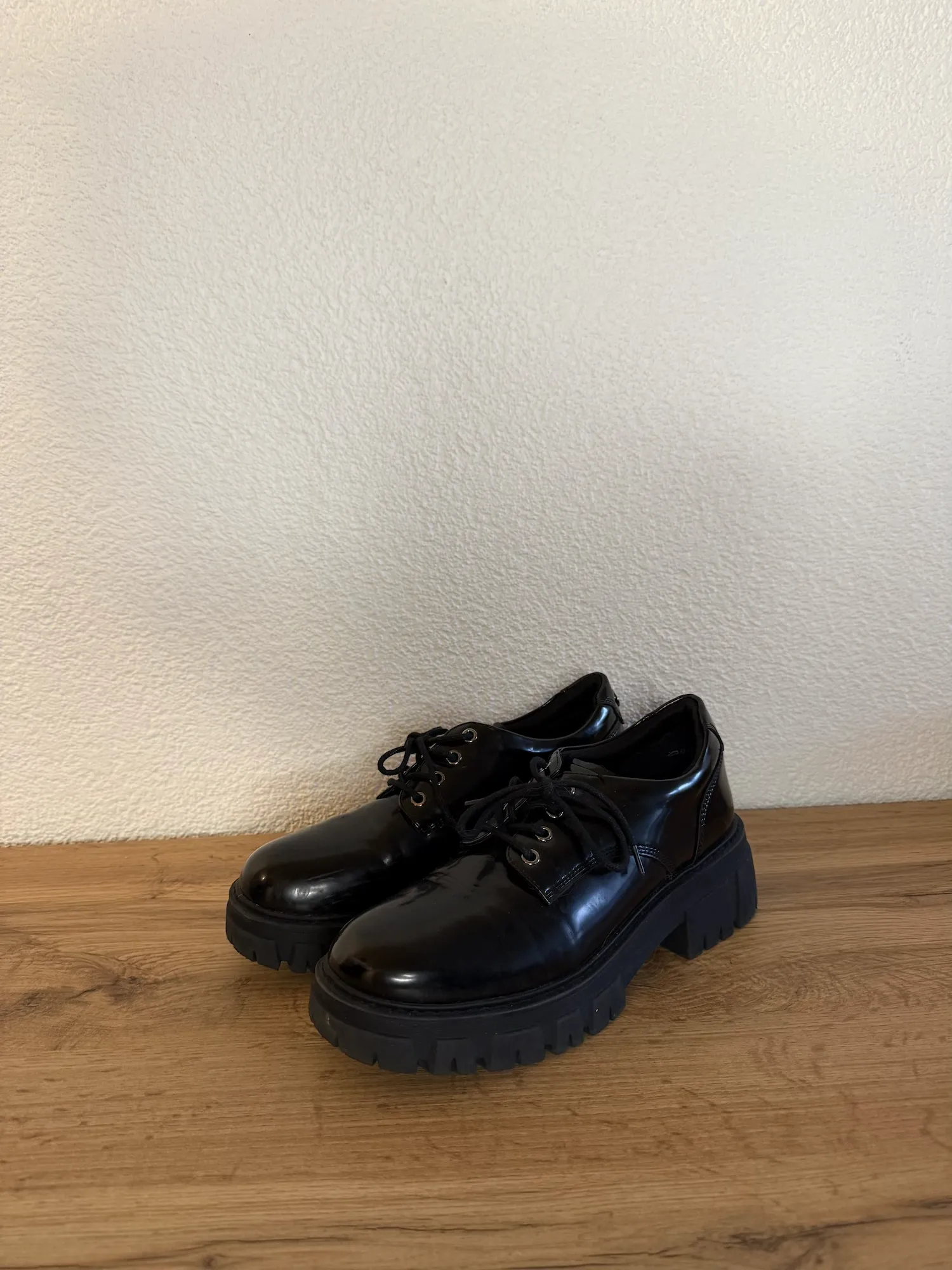 Bold black chunky lace-up shoes in size 39, used condition.