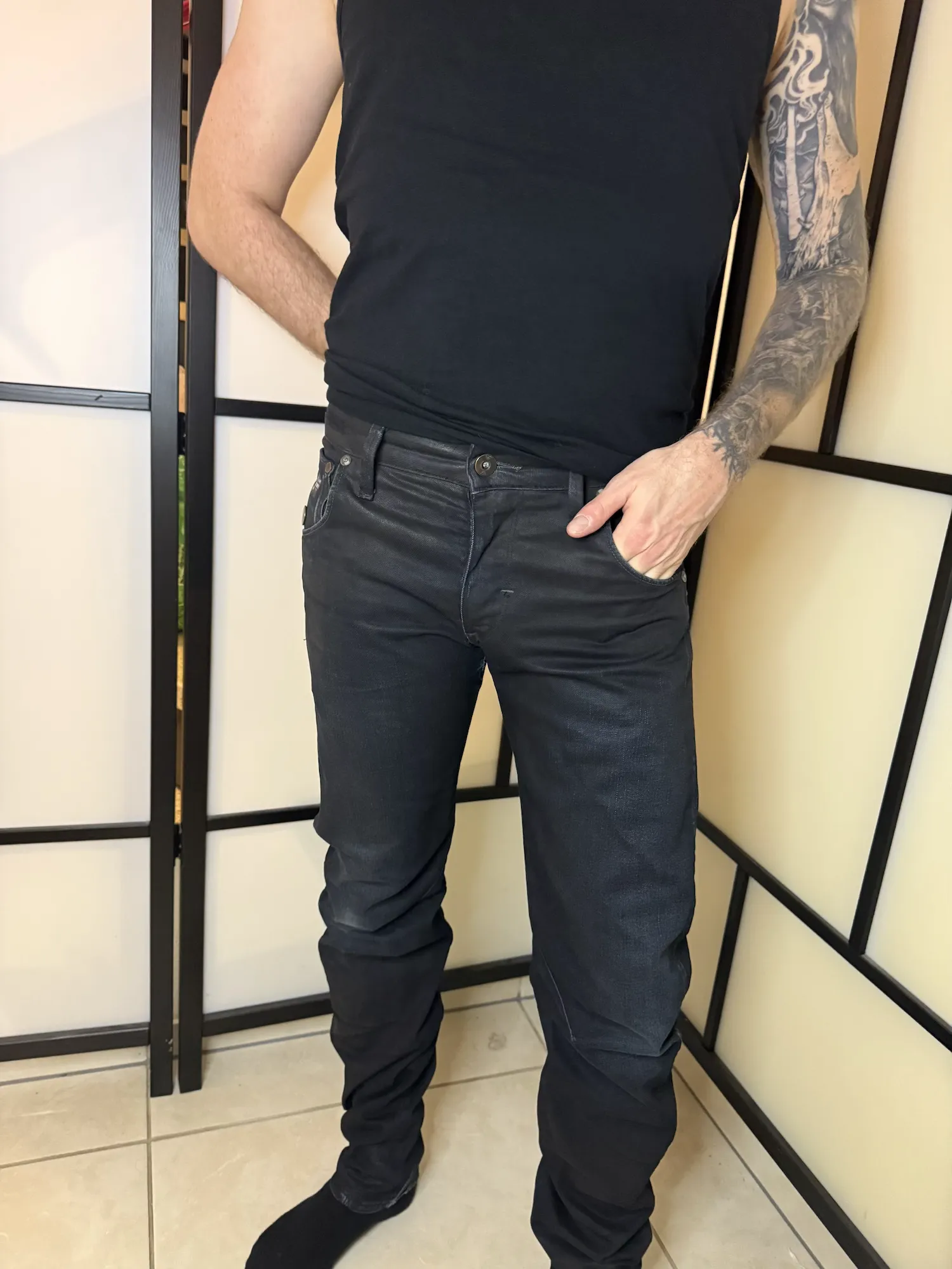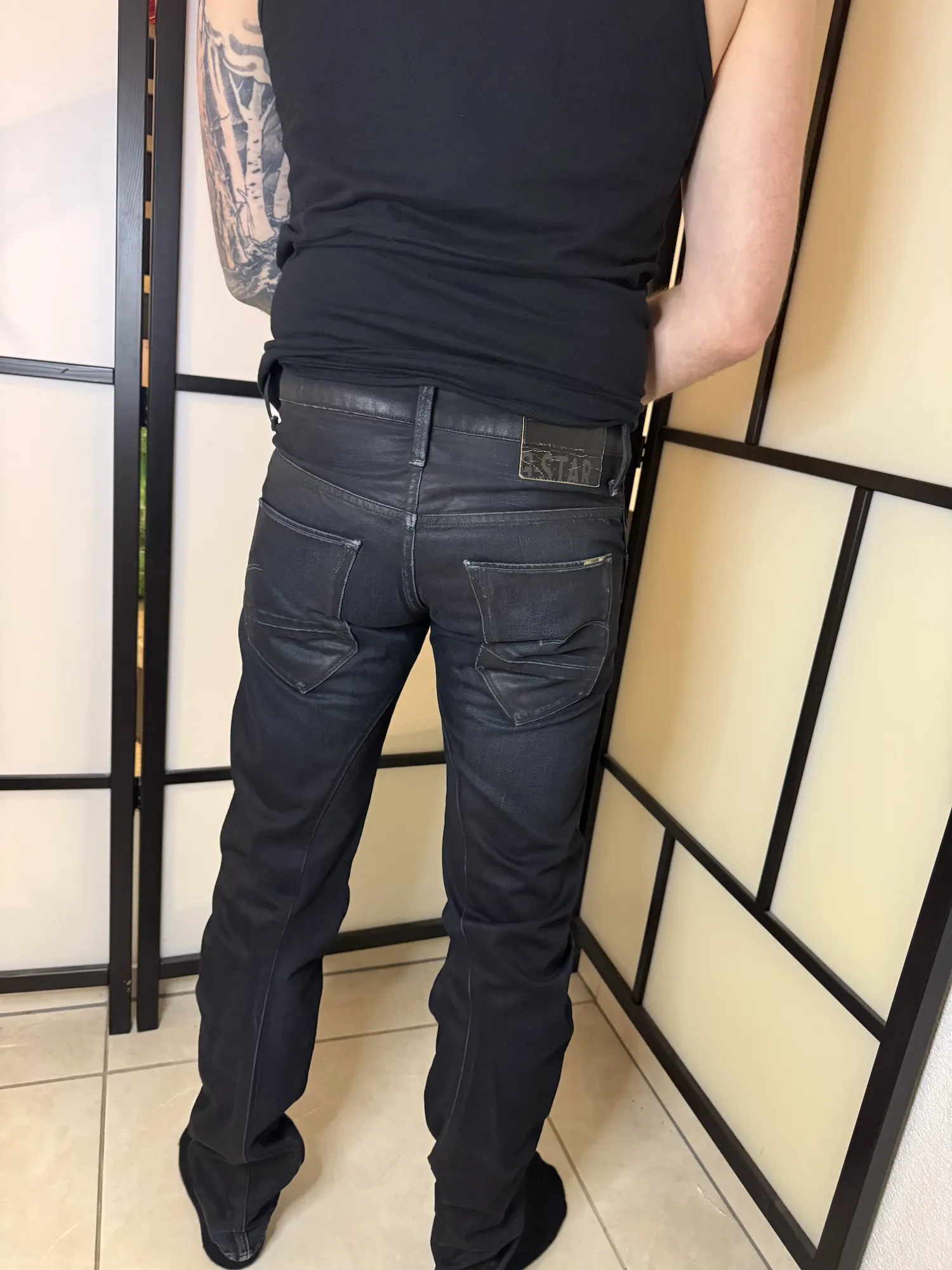 Black coated denim jeans by G-Star Raw in size W29/L34, worn condition.