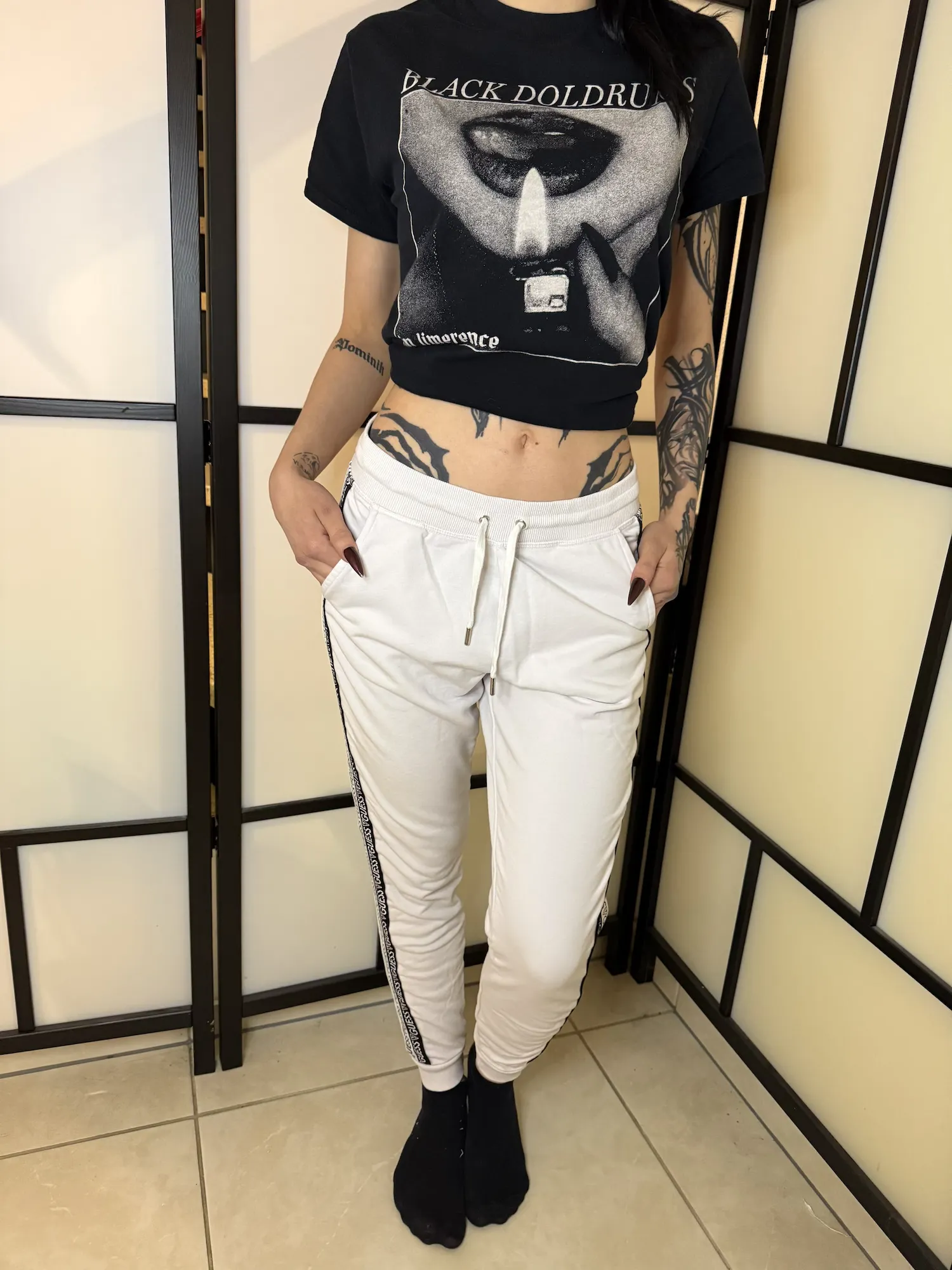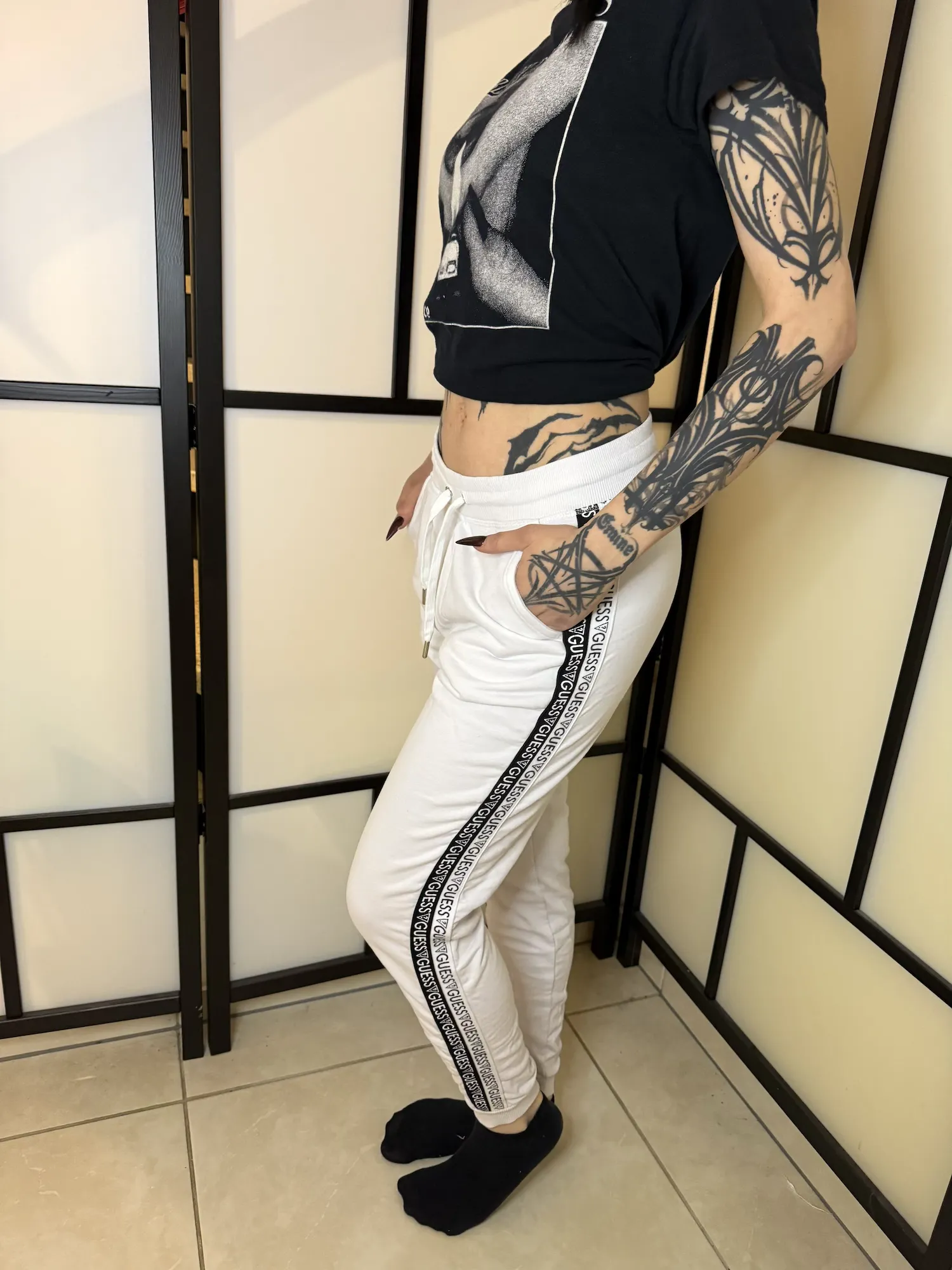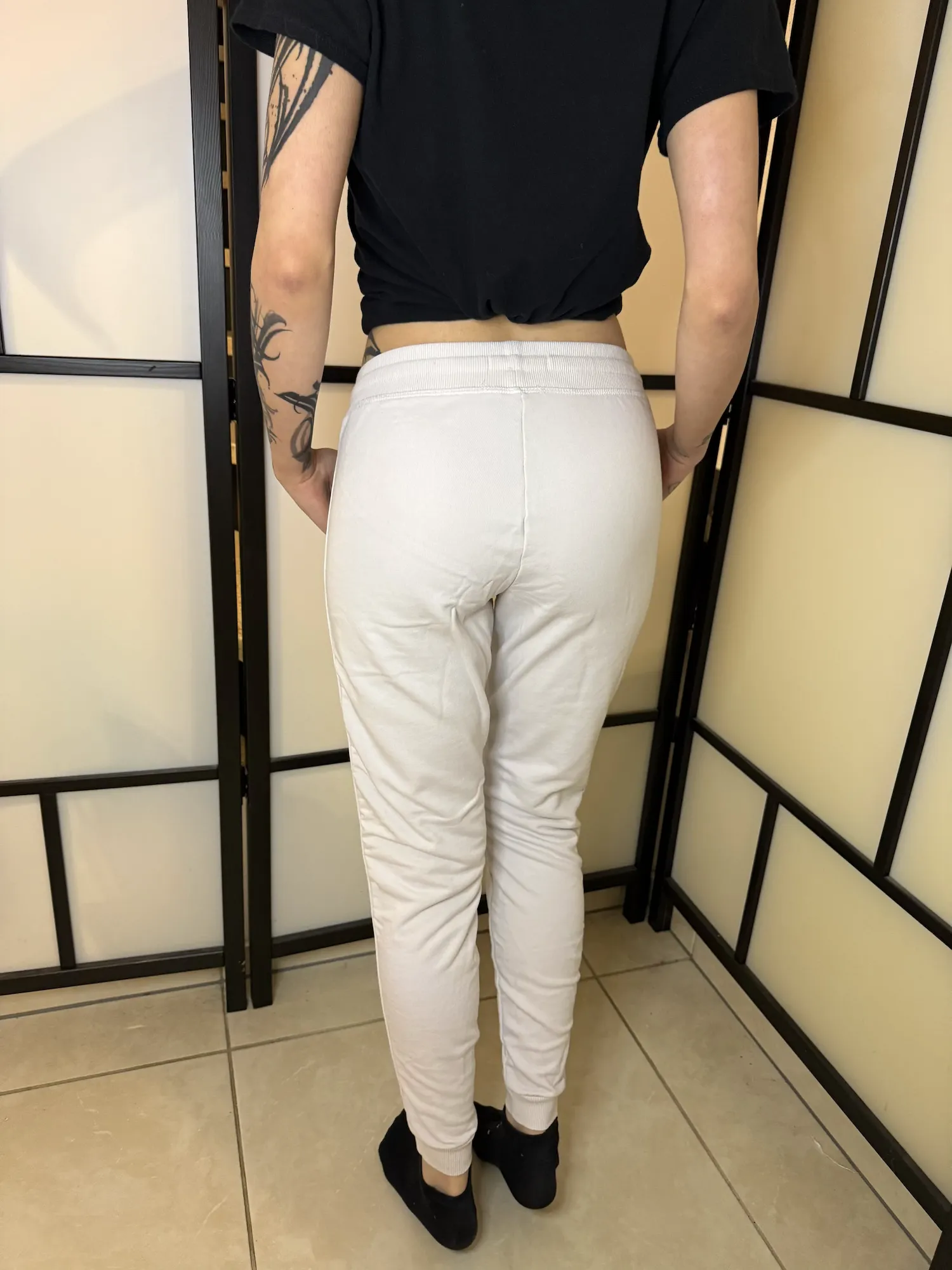 Details: Elastic waistband, drawstring, side pockets, cuffed ankles