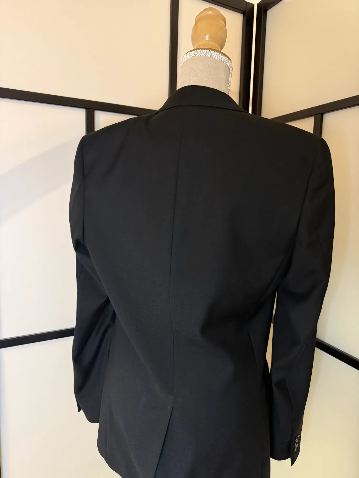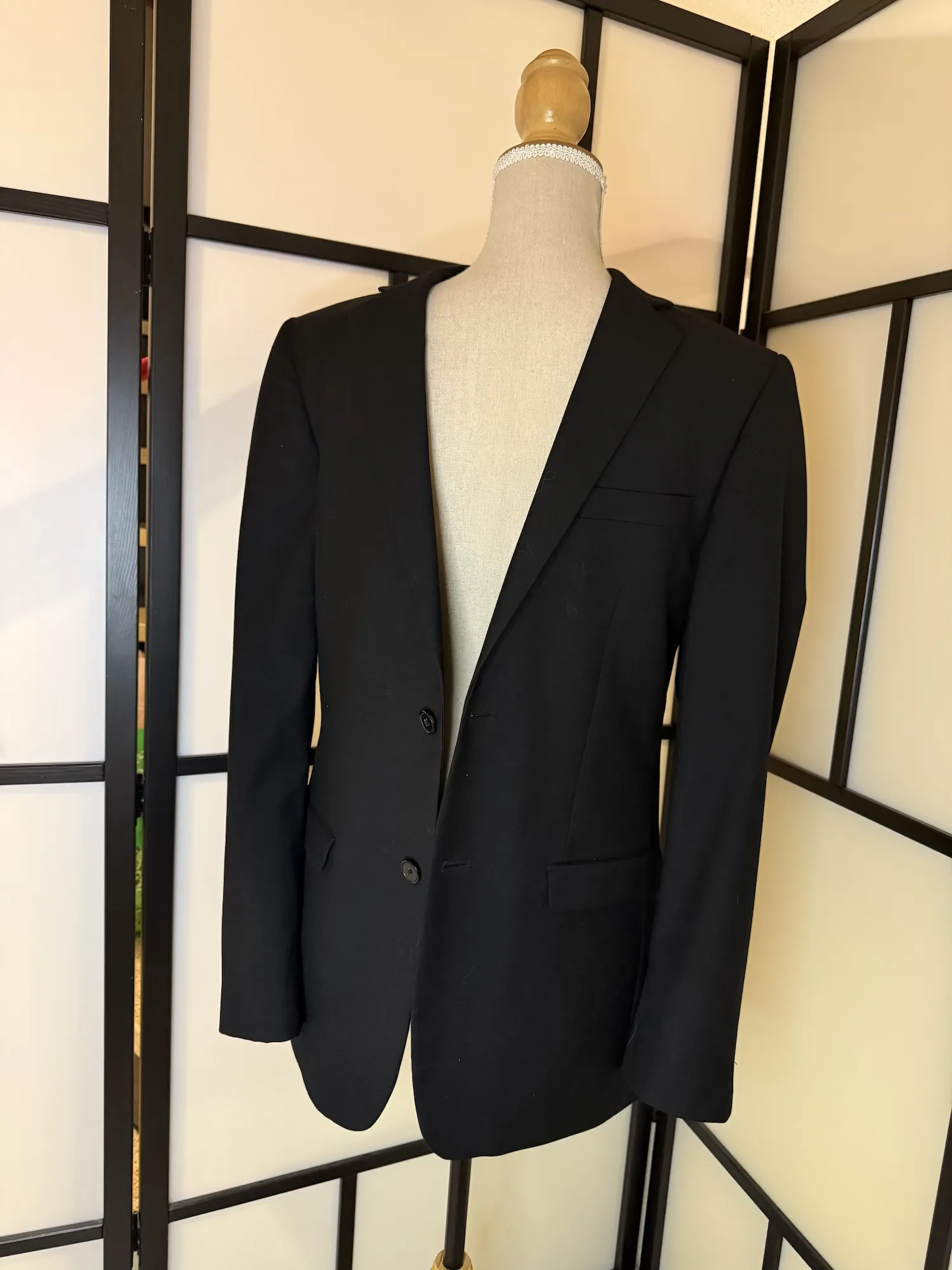 Tailored fit with a clean, structured silhouette. Features a two-button closure, notched lapel, chest pocket, and front flap pockets for a timeless, elegant look.