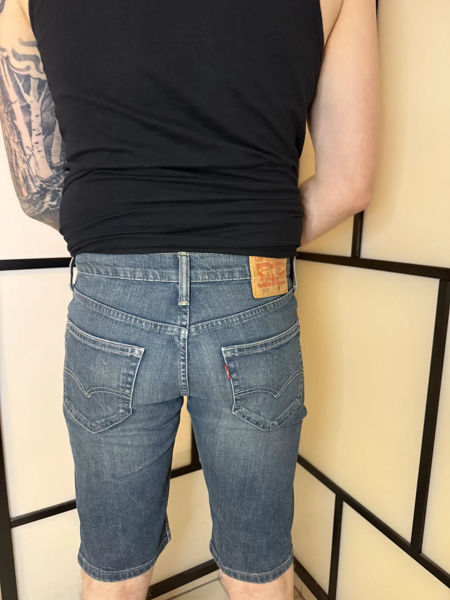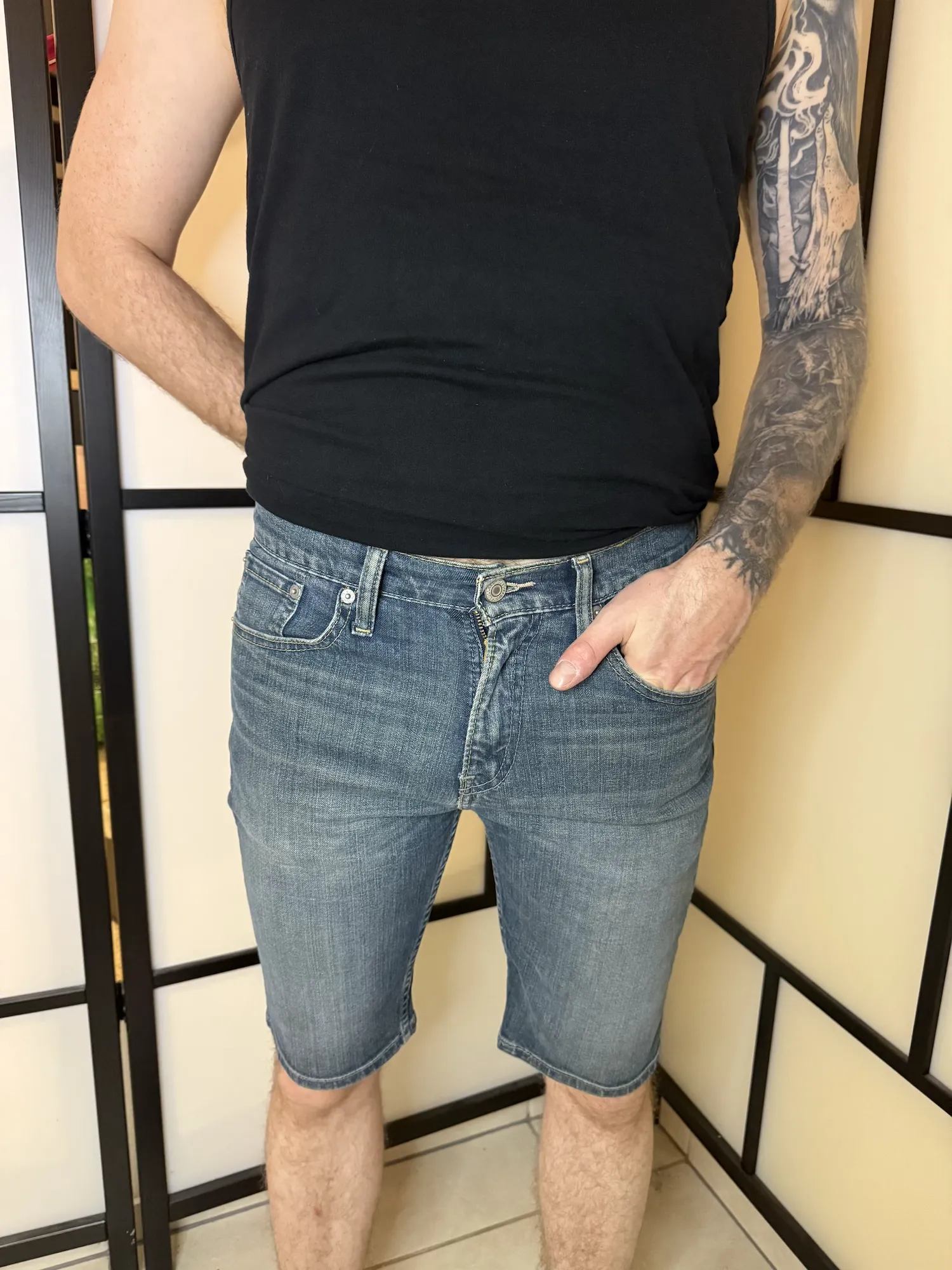 Light blue denim shorts by Levi’s in size W28, worn condition.