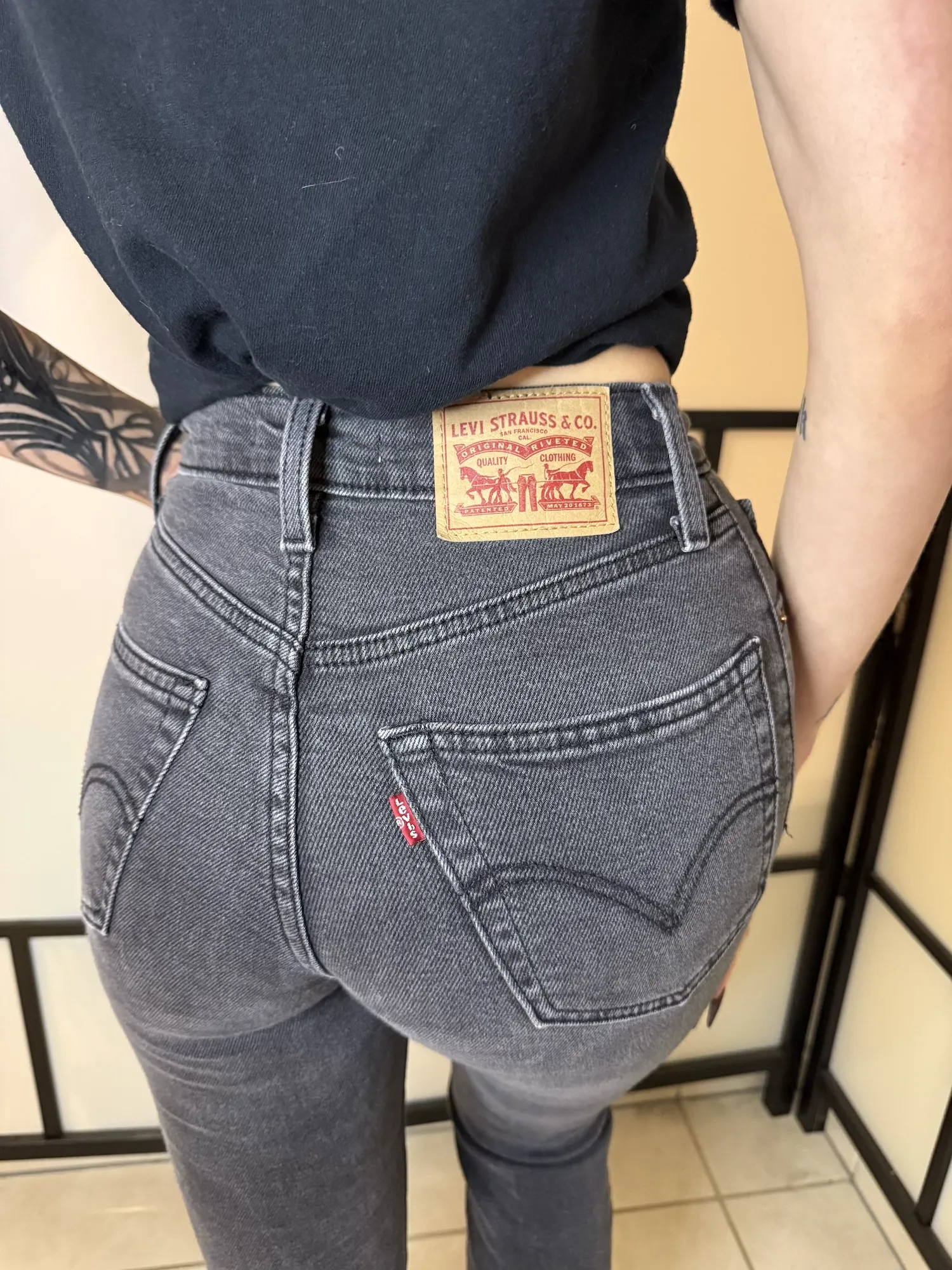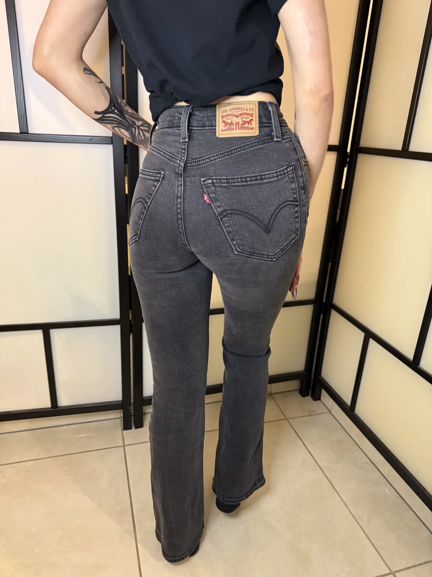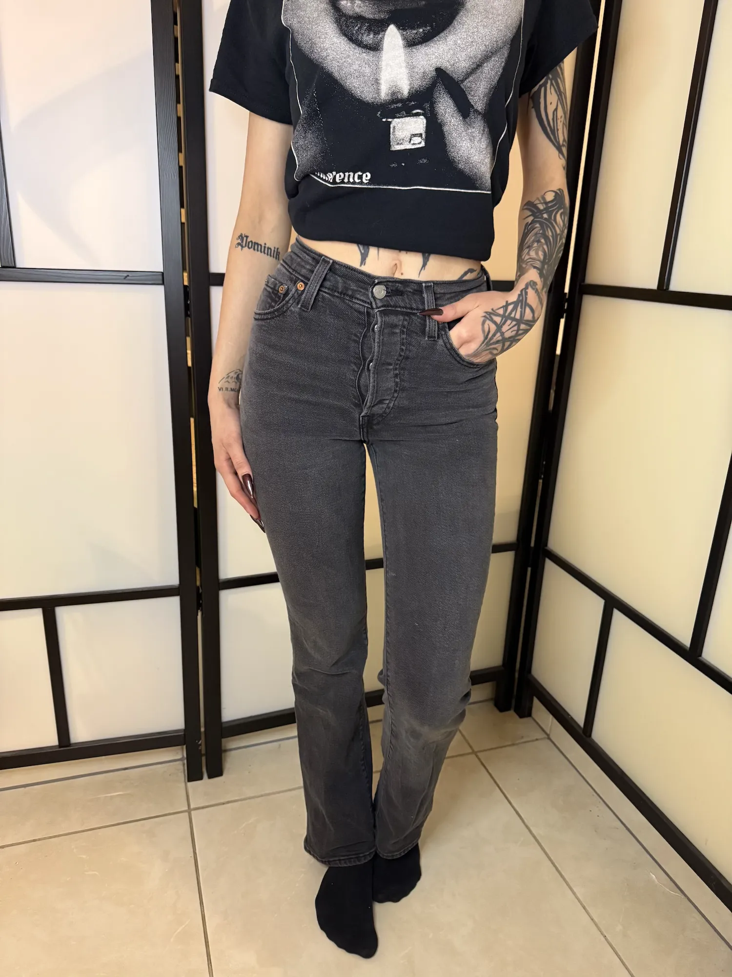 Black/charcoal denim jeans by Levi’s in size W23, worn and in good condition.