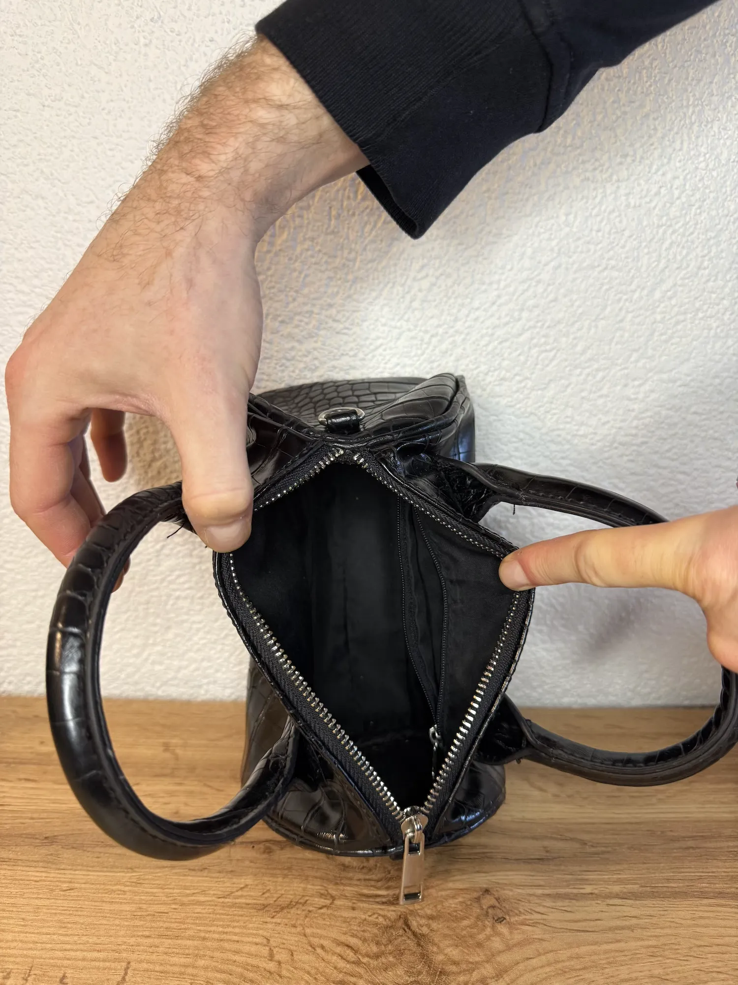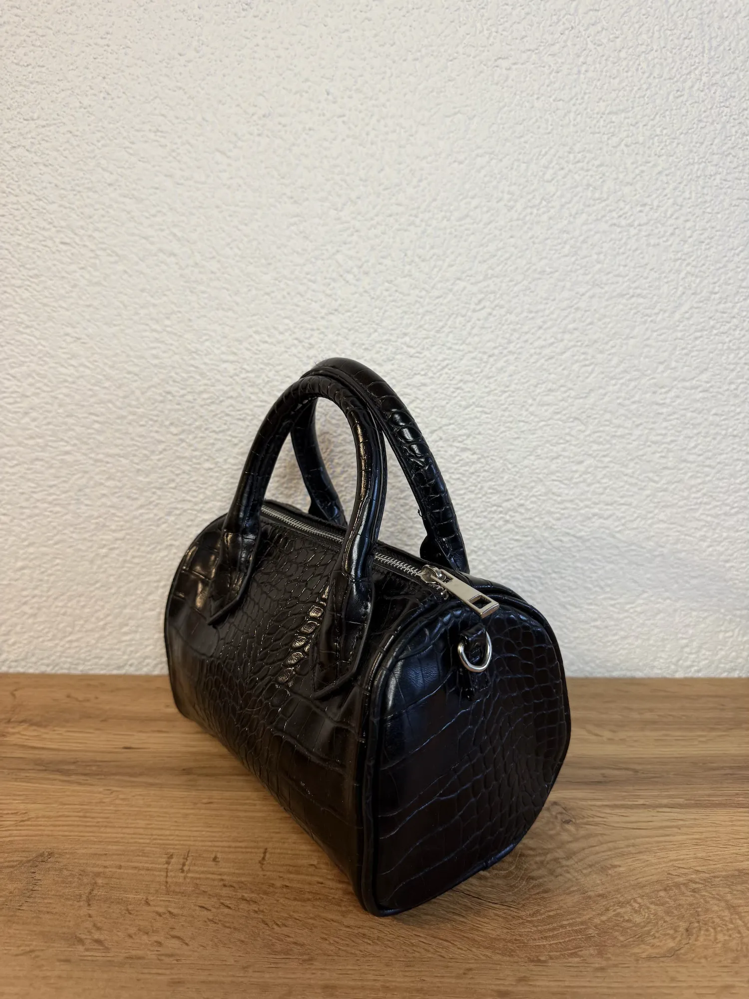 Color: Black (croc-embossed finish)