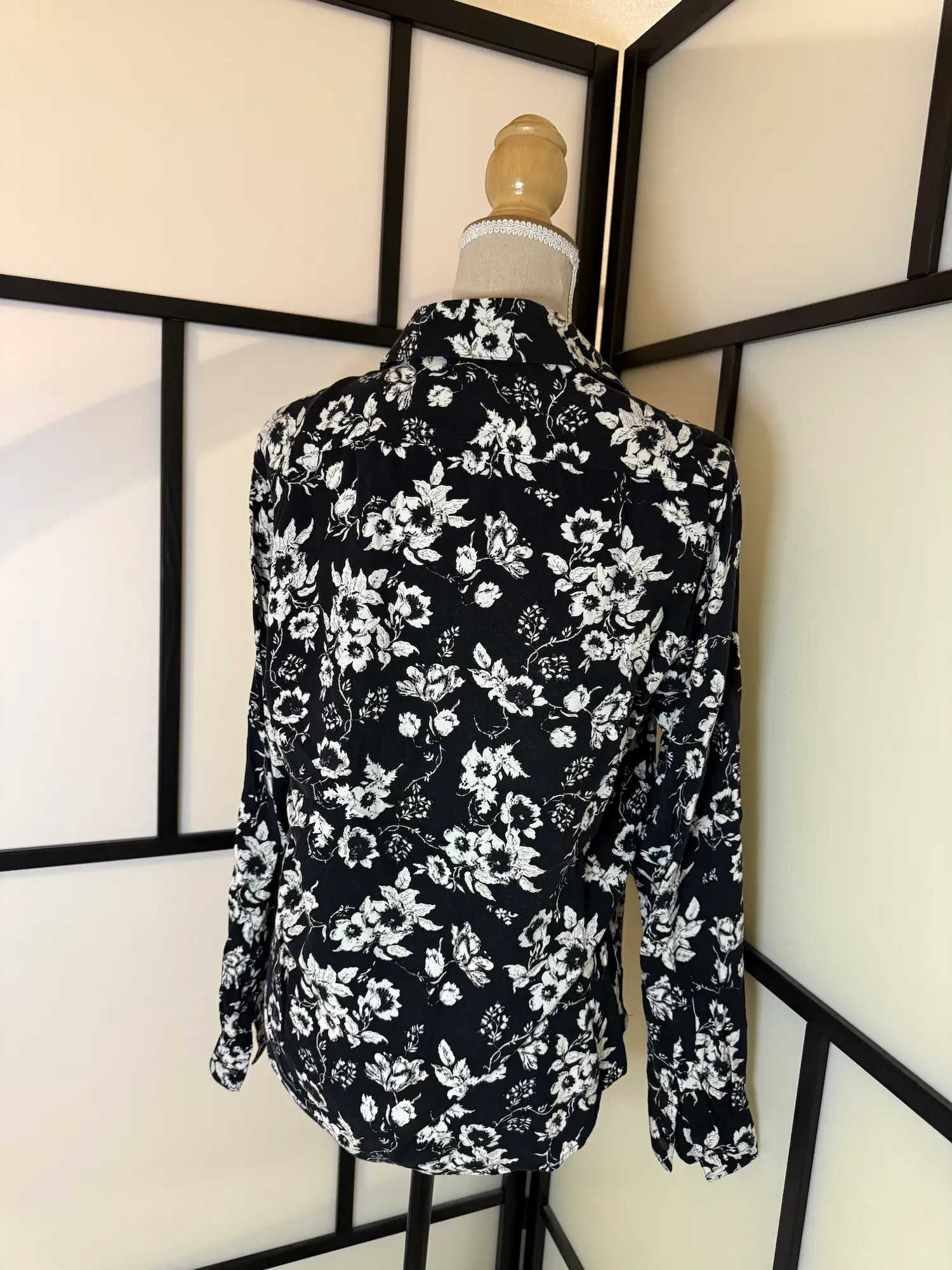 Color: Black with white floral print