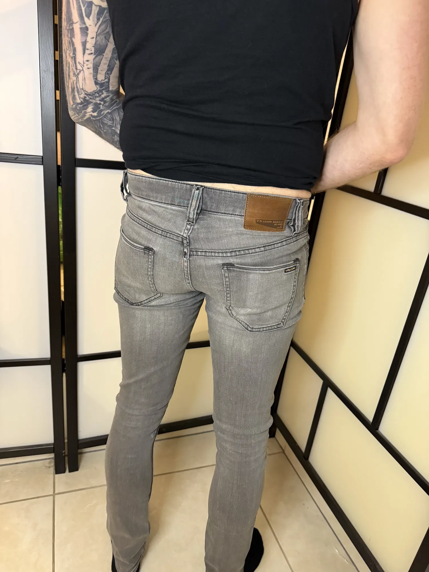 Modern slim cut with a mid-rise waist and classic five-pocket styling. Soft grey wash makes them easy to style for everyday outfits. Button & zip closure with subtle Volcom detailing.